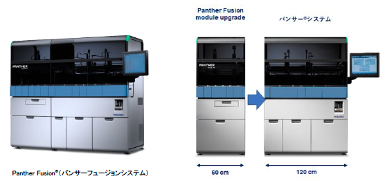 「Panther Fusion®」(パンサーフュージョンシステム)は,「パンサー®システム」を基盤として,「Panther Fusion®」モジュールを追加することにより利用が可能になる。TMA法に加えてPCR法の検査が一台で可能となり,TMA法と同様に,PCR法でも核酸抽出からPCR増幅反応までを完全自動で行う。オープンアクセス機能でラボ毎の自家調製試薬(LDT:Laboratory Developed Test(研究用))の開発をサポートし,ラボのニーズ次第で新型コロナウイルスの変異株測定に迅速に対応可能となる等,多様な検査ニーズを満たす。