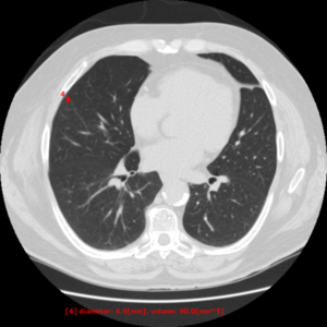 X線画像では,空気は黒く,骨・筋肉・血液などの水分は白く写る。通常は黒く映る部分が白く見えた場合,それを「結節影」と呼び,肺がん,肺結核,肺炎などの可能性が疑われる。定期健康診断などで実施される胸部X線・CT検査において,そういった「結節影」が見られた場合には,精密検査によって確認をする必要がある。
