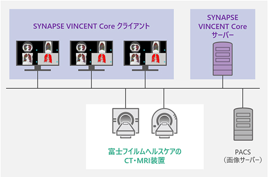 3D画像解析システム「SYNAPSE VINCENT(シナプス ヴィンセント)」の放射線科領域向けアプリケーションを富士フイルムヘルスケアのCT・MRI用端末で利用可能に