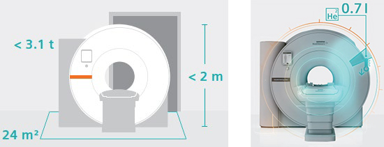 MAGNETOM Free.Starは,1.5テスラと比較してMRIの導入・設置にかかるコストをはじめとする全体的な経済性の改善により,収益性の高い経営の推進に貢献する。例えば,最もコンパクトなサイズ設計※を実現し,設置の利便性を高めるとともに,ライフサイクルコストを大幅に削減するための数々のイノベーションを採用している。