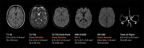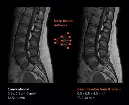 Deep Resolveは,ディープラーニング(深層学習)とターゲットデノイジング(ノイズの標的除去)により画像のノイズ除去や撮像した画像を高分解能化することで,高品質な画像の取得と撮影時間の短縮※を可能にする。検査精度やワークフローの向上のほか,被検者の快適性や質の高い医療へのアクセス向上が期待される。