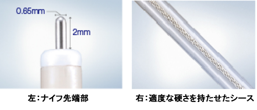 ESDにおいては,組織の切開時に病変部以外の組織を傷つけて出血するリスクがある。本製品では医師から声を集約して,マーキングとプレカットに最適なサイズ(突出長2.0mm,外径0.65mm)を実現しつつ,安定した操作ができるように適度な硬さを持たせて,ユーザーの使用感の向上を目指した。これにより,正確なマーキング・プレカットをサポートし,安定的な治療の実現に貢献する。