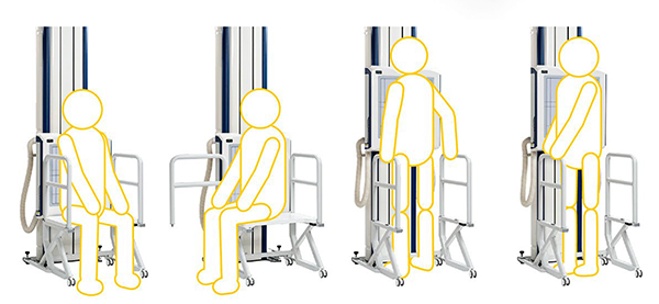 ・座面は簡単に取り外せ,立位撮影をサポートする。