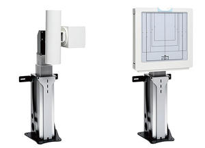 管球支持器「ジェミニチューブ」と立位撮影台「ジェミニスタンド」で構成される連動システム。