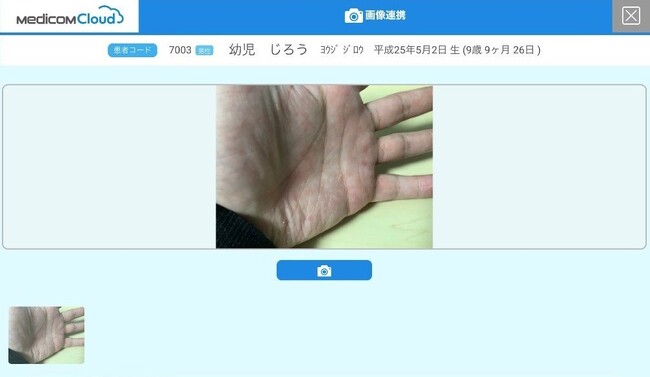 タブレットに搭載のカメラで患部や保険証などを撮影し,ケーブル接続等を行わずに画像データを格納できる。これにより,在宅診療中にも患者を撮影した写真をカルテに取り込むことができ,業務時間の短縮につながる。