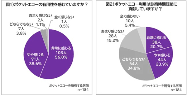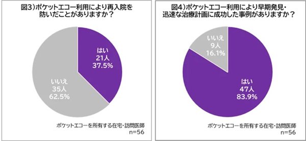 ・ポケットエコーを所有する医師の約7割,ポケットエコーを所有する在宅診療医師の8割以上が,ポケットエコーにより早期発見および迅速な治療計画を立てることができたと回答