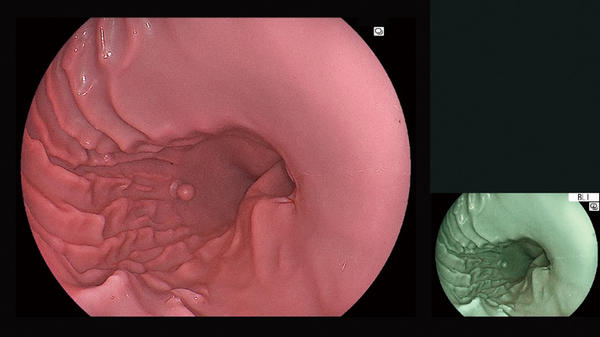 富士フイルムは,2020年に4色のLED照明の発光強度を高精度に制御し,さらに画像処理を組み合わせることで多彩な観察モードを提供するLED光源搭載内視鏡システム「ELUXEO 7000システム」※1を発売。粘膜表層の微細な血管や粘膜の微細な構造などを強調して表示する機能「BLI(Blue Light Imaging)」や,画像の赤色領域のわずかな色の違いを強調して表示する機能「LCI(Linked Color Imaging)」により,医師の内視鏡診療を支援している。