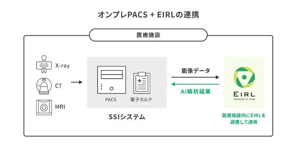 SSIが提供する電子カルテシステム・PACSを含めた医療施設向けの総合ITソリューションにEIRLを組み合わせることで,医療施設向けに高付加価値のサービスを提供する。