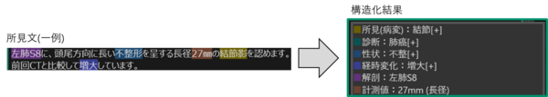 実際の画面イメージ。記載された所見文を上記のような形で構造化処理を行う。