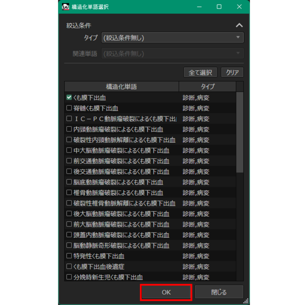 検索したキーワードから構造化単語の候補を選択。