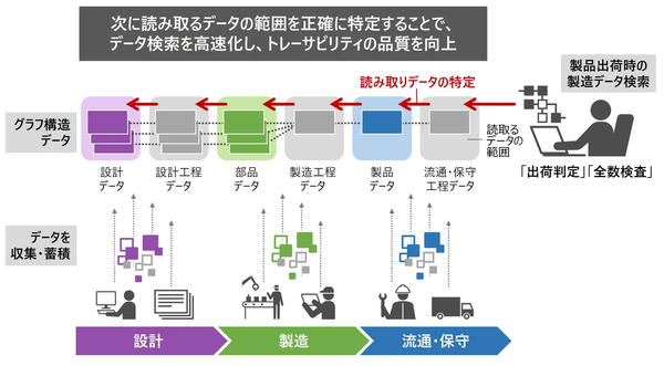 図1 開発技術の適用イメージ(トレーサビリティ問い合わせ例: 徹底的な製造検査)