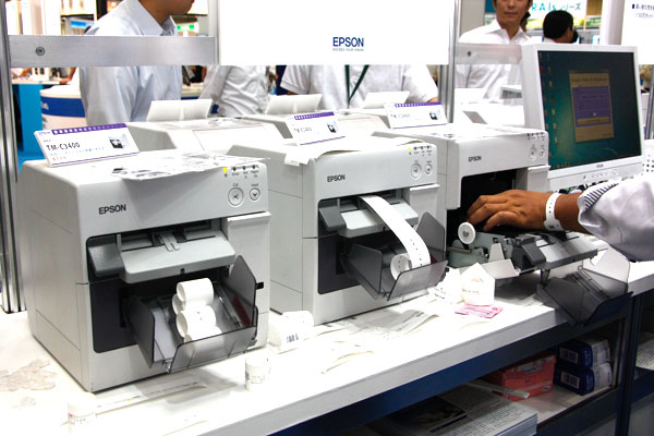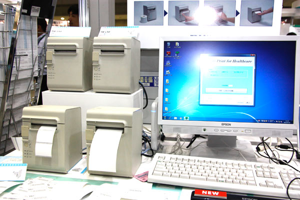 新製品のフラットベッドスキャナ「DS-7500」は,100枚給紙,40枚/分のスキャンスピードで,スキャン作業の手間を軽減し,業務効率をアップさせる。また,バーコード認識機能を搭載し,患者IDのバーコードラベルを文書に貼付して読み取ることで,自動的に指定したフォルダにスキャンデータが格納される。ブースでは,バーコードを印刷するコンパクトなラベルプリンター「TM-L90」も併せて展示された。
