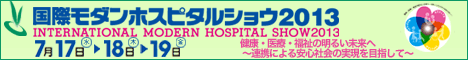 会期・開場時間:2013年7月17日(水)~19日(金) 10:00~17:00 会場:東京ビッグサイト 東展示棟 / 会議棟 主催: 一般社団法人 日本病院会 / 一般社団法人 日本経営協会 出展者数:380社(前回317社)入場料:原則として,招待券持参者のみ
