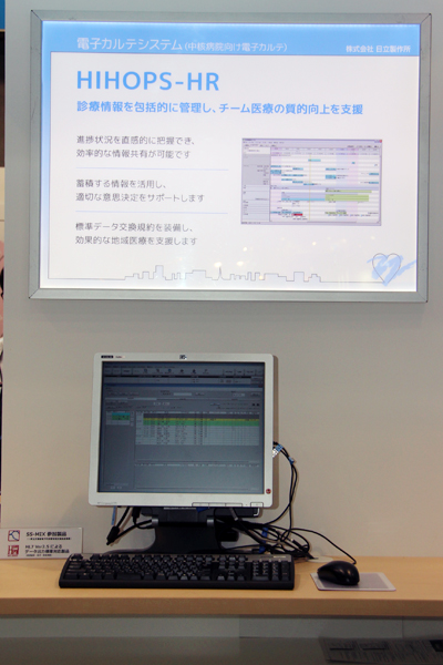 また,300〜400床の中核病院向けの電子カルテシステムとして展示した「HIHOPS-HR」(日立製作所)も,時系列での患者管理が可能で,診療情報を包括的かつシームレスに管理することで,チーム医療に貢献する。