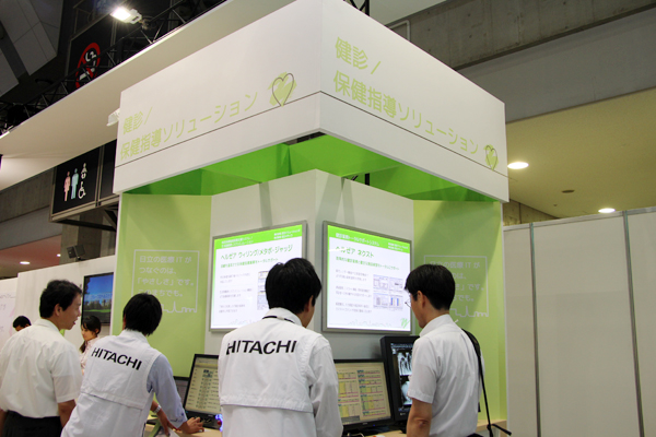 日立グループは,医療ITを扱う日立製作所 ,日立メディコ ,日立メディカルコンピュータ ,日立ソリューションズ が合同出展し,最新のITソリューションを紹介した。各社が持つ強みを生かして,クリニックから中核病院,健診施設それぞれの現場のニーズを汲み取り,業務の効率化や情報セキュリティを支援する各種システムをアピールした。