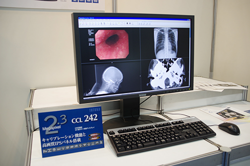 24.1型医用画像モニタ「CCL242」は,1920×1200ピクセルのワイド表示に対応。3系統の入力ができ,電子カルテシステムとPACSビューワを1画面上で並列表示して読影を行うことができる。液晶は,高画質IPSパネルを採用したほか,カラーキャリブレーション機能を搭載している。