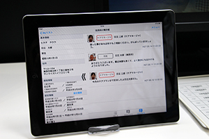 所見ボックスには医師,看護師,リハビリスタッフの記載が集約して表示される。(Open-Karte AD) |