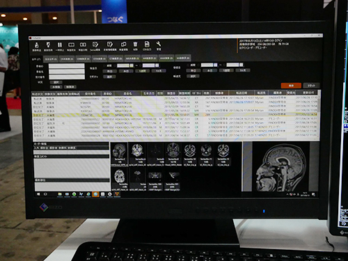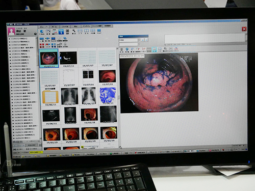 放射線部門では,今春の2017国際医用画像総合展(ITEM in JRC 2017)でも紹介されたRIS「ProRad RIS」が紹介された。造影剤の禁忌や障害,同意書の有無など,検査業務に必要となる情報を画面上に集約し,視認性の高いレイアウトで一覧表示。アイコンが点灯・ポップアップすることで,安全な検査業務を支援する。同意書のアイコンをクリックすると,紙・デジタル文書管理システム「C-Scan」,文書作成システム「DocuMaker」と連携して表示する機能も搭載した。また,画像診断装置の管理機能も搭載しており,稼働日や設定情報の表示や始業・終業点検,定期点検・修理登録などが行える。