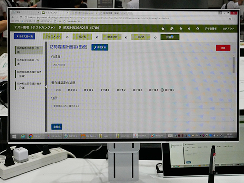 7月1日から提供が始まった「在宅アセスメントシステム」は,日本訪問看護財団のアセスメント手法である「財団方式」に対応している訪問看護向けの新システム。アセスメントから看護診断によるアセスメント分析,計画立案,看護ケアの実施,評価のサイクルにより,看護の可視化を実現するとともに,看護師の経験によらない質の向上を図れる。クラウドサービスとして提供され,初期費用は1施設5万円,月額5000円(1ライセンス)で利用できる。既存のPCを利用できるため,コストを抑えた導入が可能である。