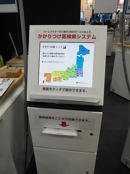 かかりつけ医検索システムは,地域の中核病院などの外来で近隣の連携医療機間の情報を検索し,地図などをあわせて印刷できる患者向けのキオスク端末である。タッチパネルを使って,住所や診療科目などで絞り込むことができ,タップするだけで操作できることから高齢者にも使いやすいシステムとなっている。データベースや画面のユーザーインターフェイス部分などFileMakerプラットフォームで開発されている。かかりつけ医の検索という目的に絞ることで,シンプルな構成でメンテナンスの手間を最小限にしてコストを抑えているのが特長だ。