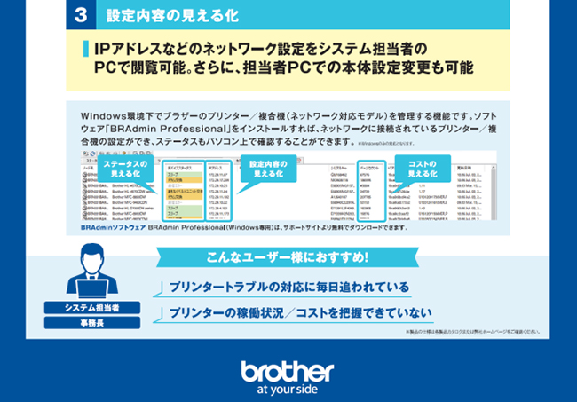プリンターのステータスを一覧管理できる「BRAdmin」