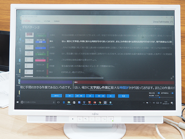 新製品の会議発言録作成支援システム「Talk Visible」は,同社の人工知能(AI)「Zinrai」を活用し,録音した音声データを認識,会議録を作成する。高性能な専用マイクなどは不要で,複数の話者の特徴をとらえて自動的に認識できる。事前に登録すれば,最大20名までの識別が可能。また,音量を均一に調整し,環境音などの周辺ノイズを除去することで,より正確に内容を書き起こすほか,独自開発のエディターで効率良くテキストを編集できるなど,会議録作成時間を大幅に短縮する。医療・ヘルスケアの領域では,院内の会議や退院前カンファレンスなどの議事録作成などでの活用が考えられ,システムによる医療機関の働き方改革の支援が期待できる。