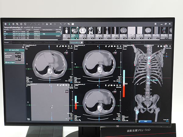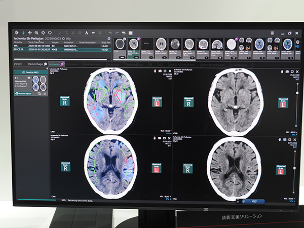 読影支援ソリューション「Abierto Reading Support Solution(Abierto RSS)」は,AltivityのAI技術などを用いて開発されている。領域ごとにアプリケーションを展開し,脳神経外科領域では,脳梗塞の診断から治療までの迅速に行うための“Abierto RSS for Neuro”として,Abierto RSS for Neuroには,“Hemorrhage analysis”“Ischemia analysis”“Brain Perfusion”“Brain Vessel Occlusion”の4つのアプリケーションを用意。検査終了後,データを受信すると自動で解析処理が実行される。また,“Bone Subtraction”は過去画像との差分処理を行い,骨の性状変化を表示する。骨転移の溶骨型・造骨型の違いを色で分けて病変の見落としを防ぐ。