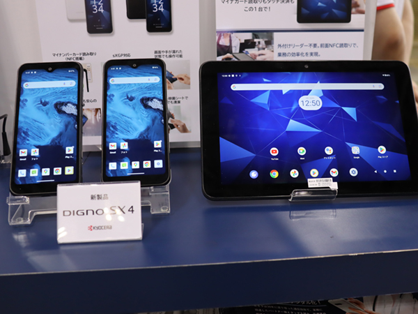 医療をはじめ幅広い業界の要望に応える最新デバイス(今秋以降発売予定)も展示した。法人向けスマホ「DIGNO SX4」は,耐久性や清掃性に優れ,グローブでの操作が可能なほか,NFCを搭載しマイナ保険証の読み取りにも対応する。法人向けタブレット「DIGNO Tab2 5G」は前面にNFCを搭載し,マイナ保険証読み取りやタッチ決済に1台で対応。オンライン資格確認が義務化される訪問看護などのシーンで活用できる。