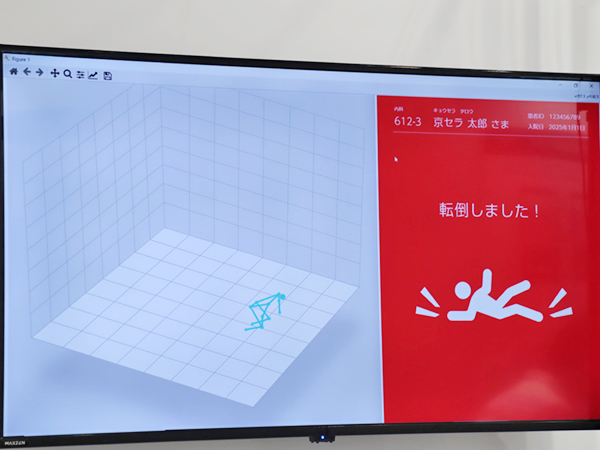 このほか,京セラが研究開発中の医療向けの技術・ソリューションが参考展示された。「歩行解析システム」は,頭と両足首に付けたセンサでデータを取得・解析することで,歩行中の足の動きや身体の揺れなどを可視化しスマホアプリで確認できるもので,リハビリの定量的評価を支援する。「薬剤認識システム」は,独自の高ロバスト物体認識技術により,スマホのカメラをかざすだけで高精度に薬剤を認識する。一包化,PTP包装シートの両方に対応し,持参薬の特定を容易にする。「食事管理システム」は,三次元測距技術と認識AI技術により,喫食前後の配膳トレーを撮影することで食事量と栄養摂取量を精度よく記録することができる。また,「ミリ波を用いた離床センシング」は,天井に設置したミリ波レーダによりベッド周囲を検知することで,高精度に患者の状態(動き,姿勢,バイタル)を把握できる。転倒などを検知するとアラートで通知され,カメラレスで患者のプライバシーに配慮した見守りが可能になる。