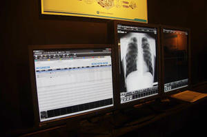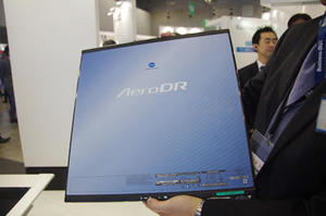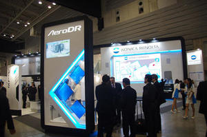 “Giving Shape to Ideas” を掲げて展示を行ったコニカミノルタヘルスケアは,FPD「AeroDR」と「NEOVISTA I-PACS SX」を核とした地域連携システム,CRシステム「REGIUS ΣⅡ」などを展示した。AeroDRついては,世界最軽量の17×17インチサイズ「AeroDR1717HQ」やX線自動検出技術「AeroSync」,「AeroDR 長尺システム」など,進化する製品群が紹介された。また,NEOVISTA I-PACS SXは,「自動心胸比算出機能」「整形計測機能」を搭載。地域連携ではiPadなどのデバイスにも対応する。REGIUS ΣⅡは1時間に66枚の処理能力を持つ。