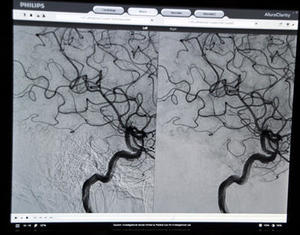 70%以上の線量を削減して撮影されたAllura Clarityの画像(右),左が従来の画像