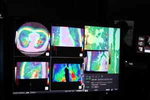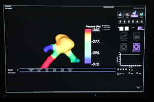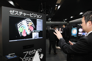 創立15周年を迎えるザイオソフトは,「定量化」「マルチクリニカル・マルチモダリティ・マルチフュージョン」をテーマとして,ziostation2の最新アプリケーションやPhyZiodynamic技術を利用したさまざまなアプリケーションを展示した。ブースでは,世界初の製品としてPhyZiodynamic技術によって形態と機能(動き)の情報をフュージョンして表示する「4Dモーション解析」,動脈瘤内の血流情報のシミュレーションを短時間で可能にするhemoscopeの「血管シミュレーションプロトコール」を展示。また,技術展示として3D画像を立体視する「3Dモニタ」,非接触センサー(Kinect)を使ってziostation2の3D表示を操作する「ゼスチャービジョン」を紹介した。そのほか,ziostation2の新しいアプリケーションとして,経カテーテル的大動脈弁置換術(TAVR)をサポートする「TAVR術前プランニング」,「MR右心機能解析」などを,機能の追加として「CT大腸解析」で読影者の診断を支援する「PhyZio Enhance Filter」,アシアロシンチグラフィとのFusionが可能になった「CT肝臓体積測定」などを展示した。