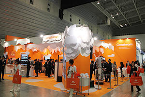 “クラウドでつながる”がテーマ。空のクラウドとリンクして情報をやりとりするイメージをブースで再現