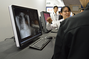 6月に発売予定の手術室向け高画像58型画像表示モニターRadiForce LS580Wは,1つの大型モニター内に各映像を集約表示できる。より快適な画像表示を支える周辺システムとともに,スムーズな操作性と作業効率の向上を紹介した。また,複数モダリティから得られる医用画像を同時表示できるマルチモダリティモニター「RadiForce Multi-Series」の新製品や電子カルテ画像表示モニターなども展示。さらに,4つのテーマでテクニカル・コンサルティングが実施され,期間中多くの相談者がブースに訪れていた。(4月12日取材)