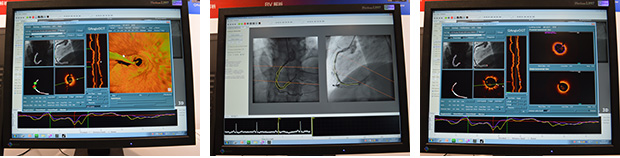 このほかのリリースを予定している新機能として,血管造影画像と光干渉断層法のOCT画像を,それぞれ位置を同期(フュージョン)させて閲覧することができるQAngioXA 3D & QAngioOCTの紹介が行われた。QAngioXA 3D & QAngioOCTの機能が加わることで,より正確な心血管の解析を行うことが可能になる。