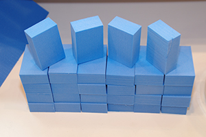 ポリエチレン樹脂を基材とする独立発砲の素材を採用したポジショニングブロックは,型崩れしにくく,水を吸わない素材なので,水で洗浄することができる。通常のセット製品のほかに,オーダーも可能であり,ニーズも増えている。