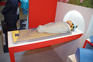 PVAゲル封入MRIファントム,立位・ポータブルFPD対応乳幼児撮影台「ファンティクサー」,小児用固定具・抑制具などを展示