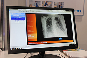 このほか,FPD搭載モバイルCアーム「Veradius Neo」やプレミアム超音波診断装置「EPIQ」,放射線画像管理システム「IDS7 PACS」の最新バージョンなどが展示され,多くの来場者で賑わった。