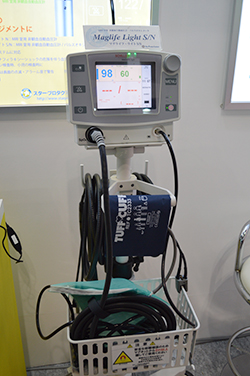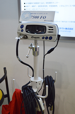 ITEM2014では,米国で開発中の新しいモニターシステムの紹介が行われた(日本国内薬事未承認)。このシステムは,SpO2(経皮的動脈血酸素飽和度)やNIBP(非観血血圧)に加え,小児などで必要性が増えてきているEtCO2(呼気終末二酸化炭素濃度)のモニターが可能。必要なモジュールだけを選び,施設に応じたシステム構成ができるという。今夏に米国での量産を計画,日本では今秋の発表をめざしている。(4月12日取材)