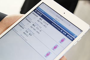 レポートの画面を縦置きにあわせてデザインしたPACSソリューションを展示