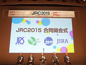 “Be cool and Practical”をテーマにしたJRC2015の合同開会式が2015年4月17日(金)13時から,パシフィコ横浜のメインホールで行われた。アンサンブルデュナミスによる演奏に続き,杉村和朗・日本ラジオロジー協会(JRC)代表理事,大友 邦・日本医学放射線学会総会(JRS)会長,平野浩志・日本放射線技術学会総会学術大会(JSRT)大会長,和田真一・日本医学物理学会学術大会(JSMP)大会長,そして,ITEMを運営する日本画像医療システム工業会(JIRA)の小松研一会長が出席し,挨拶,基調講演が設けられた。
