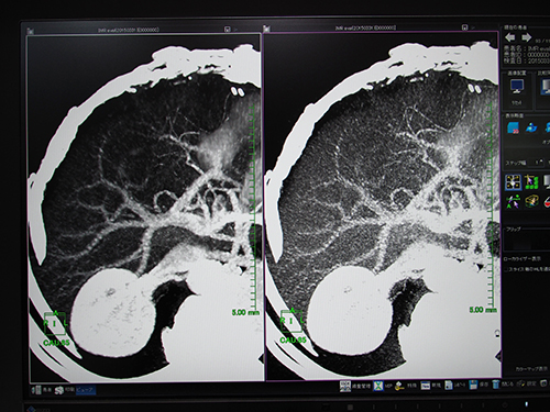 ノイズに埋もれた血管もノイズを低減することで観察可能