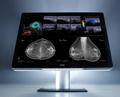 マンモ画像表示用には新型ディスプレイ2機種を読影コーナーに展示いたします。プレミアムディスプレイCoronisシリーズではCoronis 5MP LED,スタンダードディスプレイNioシリーズではNio 5MP LEDをサイドディスプレイEonis 24’とともにデモいたします。