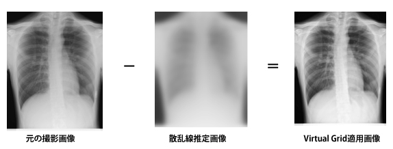 グリッドを使わなくても画像のコントラストを高めることが出来るVirtual Gridや,一度の撮影で任意の断面画像を再構成・表示する一般撮影トモシンセシス撮影機能,2回のX線照射で生じるエネルギー差を利用して,軟部・骨部などの特定画像を生成・描出するエネルギーサブトラクション撮影機能,また,全脊椎や全下肢等の幅広い領域を1度の操作で撮影し自動合成処理を行う長尺撮影機能等,低線量で高画質撮影を実現する,富士フイルムの画像処理技術。幅広いFPDのラインアップと組み合わせることで,線量低減を実現します。