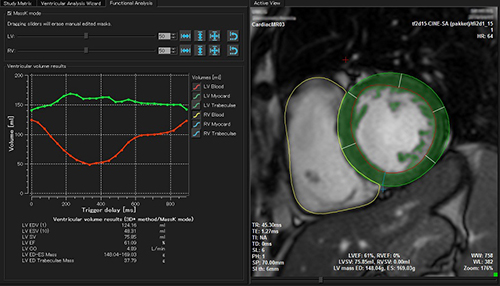いずれも世界スタンダードといえる各種解析ソフトウェアの最新バージョンを取り揃えています。シネアンギオ解析のQAngio XAおよびCAASは定番の定量解析(QCA,QVA,LVA)を行います。心臓MR解析システムであるQMassESは一般的なシネMR解析や遅延造影解析,Perfusion解析に加え,T2強調画像からの浮腫定量化(Massk Mode),心筋サルベージの計算,T1・T2・T2*マッピング等の解析ツールを備えました。IVUS解析のQIvusでは,一般的なGrayscale解析,Tissue Characterization解析,OCT像のstent解析に加え,新しくNIRS解析も加えられました。また心エコー解析として有名なTomTec-Arenaも,各種4D解析がリニューアルされました。これら各種臨床研究ツールはGoodnetからシームレスに起動(※QMassESを除く)され,蓄積された画像データをストレスなく解析できます。