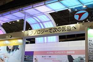 東陽テクニカブースは今回,「テクノロジーで次の医療へ」をコンセプトに,ブースのイメージを一新し,従来提案してきたフィルムレスソリューションに加え,クラウドソリューション,最新テクノロジー,OEMソリューションなど,7つのコーナーで同社が扱う最先端医用技術を紹介した。なかでも,デジタル・マンモグラフィ画像ビューア「MammoRead」が発売開始から10周年を迎えたことが大きくアピールされた。(4月17日取材)