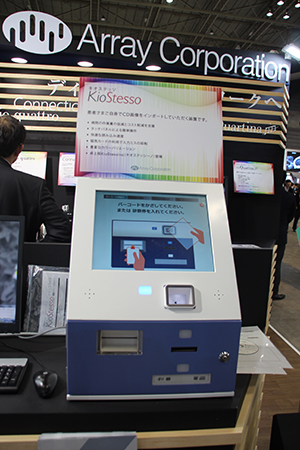 PDI(portable data for imaging)による検査画像のインポート・エクスポートソリューションを中心とした展示を行うアレイでは,“ディスクからネットワークへ”をテーマに,従来の可搬型媒体(ディスク)に続くPDIの新しい形“netPDI”のサービスを中心に,同社のPDIインポーターの新製品である「Preludio quattro」や,画像インポートキオスク端末「KioStesso」の展示を行った。