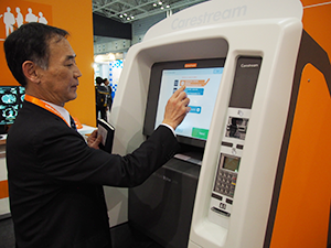また,キオスク端末は病院の外来などに設置を想定するもので,患者自身が自分の画像データをUSBメモリに書き込んで取得できる端末。画像の選択などはタッチパネルで行え,クレジットカードによる決済機能も搭載されている。日本ではこれからの展開になるが,中国ではすでに2000台が導入されているとのことだ。