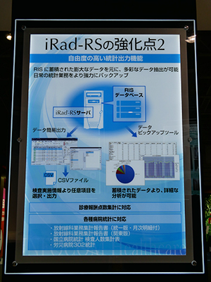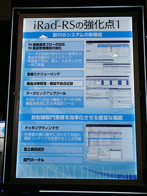 大規模病院での長期使用に耐える「iRad-RS」と「iRad-RW」の説明パネル |