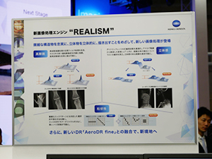 AeroDR fineの登場に合わせて開発されたのが,新画像処理エンジンのREALISMである。REALISMは,周波数強調処理における空間フィルタ処理の改良により微細な構造物を高い鮮鋭度で描出し,ダイナミックレンジの圧縮周波数の最適化したことで立体的な構造物を立体感のある画像で表現する。さらに,複雑なエッジパターンも選択的平滑化できるようにして,粒状性に優れた画像を提供するAeroDR fineの能力を最大限に生かす画像処理となっている。